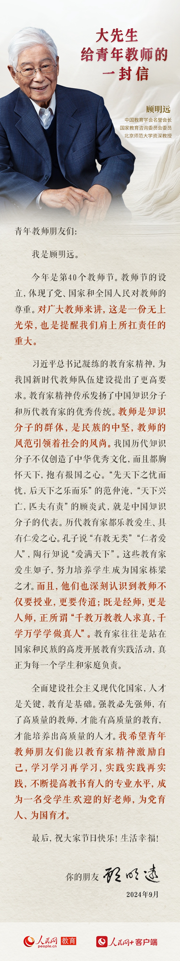 大先生顾明远给青年教师的一封信