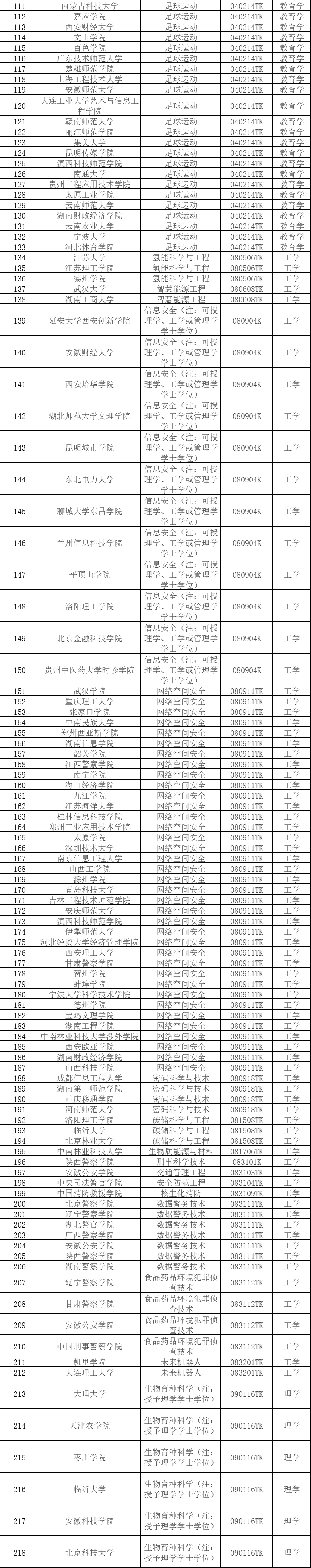 从申报的专业类型来看,2024年度共申报176种专业。其中,申报数量前五名的专业依次为:足球运动(39个)、网络空间安全(37个)、运动训练(34 个)、健康与医疗保障(17个)、老年医学与健康(14个)。