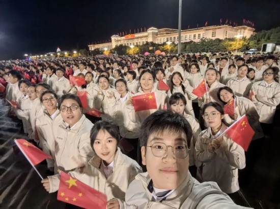 在这个历史性的时刻,能够站在天安门广场上为新中国庆祝生日,我感到无比的自豪和激动。随着国旗缓缓升起,雄壮的国歌激荡人心,我感到无比振奋。踏上新征程,我们青年学子必将在为中国式现代化挺膺担当中展现青春作为、彰显青春风采、贡献青春力量。