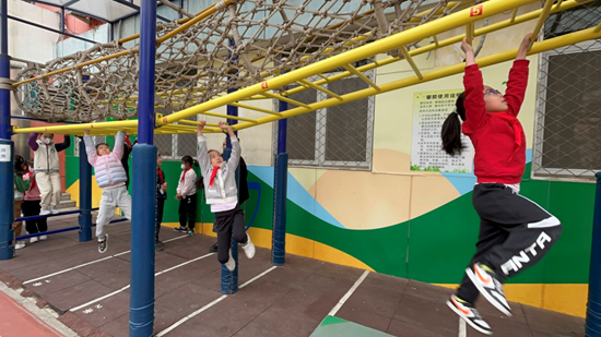 运动时间增加、运动方式增多,但学校体育运动空间不足的难题如何破解?曹京介绍,学校不断挖掘空间潜力,通过开发空地、空房、过道、楼顶、地下空间等“上天入地”进行改造。