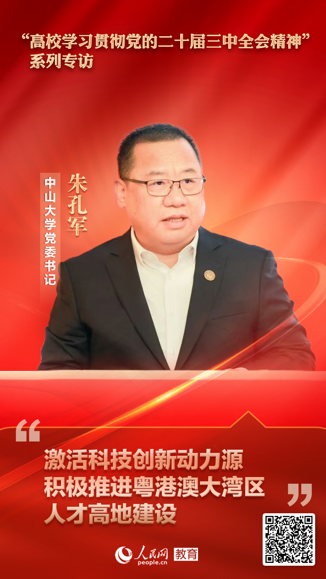 中山大学党委书记朱孔军:积极推进粤港澳大湾区人才高地建设