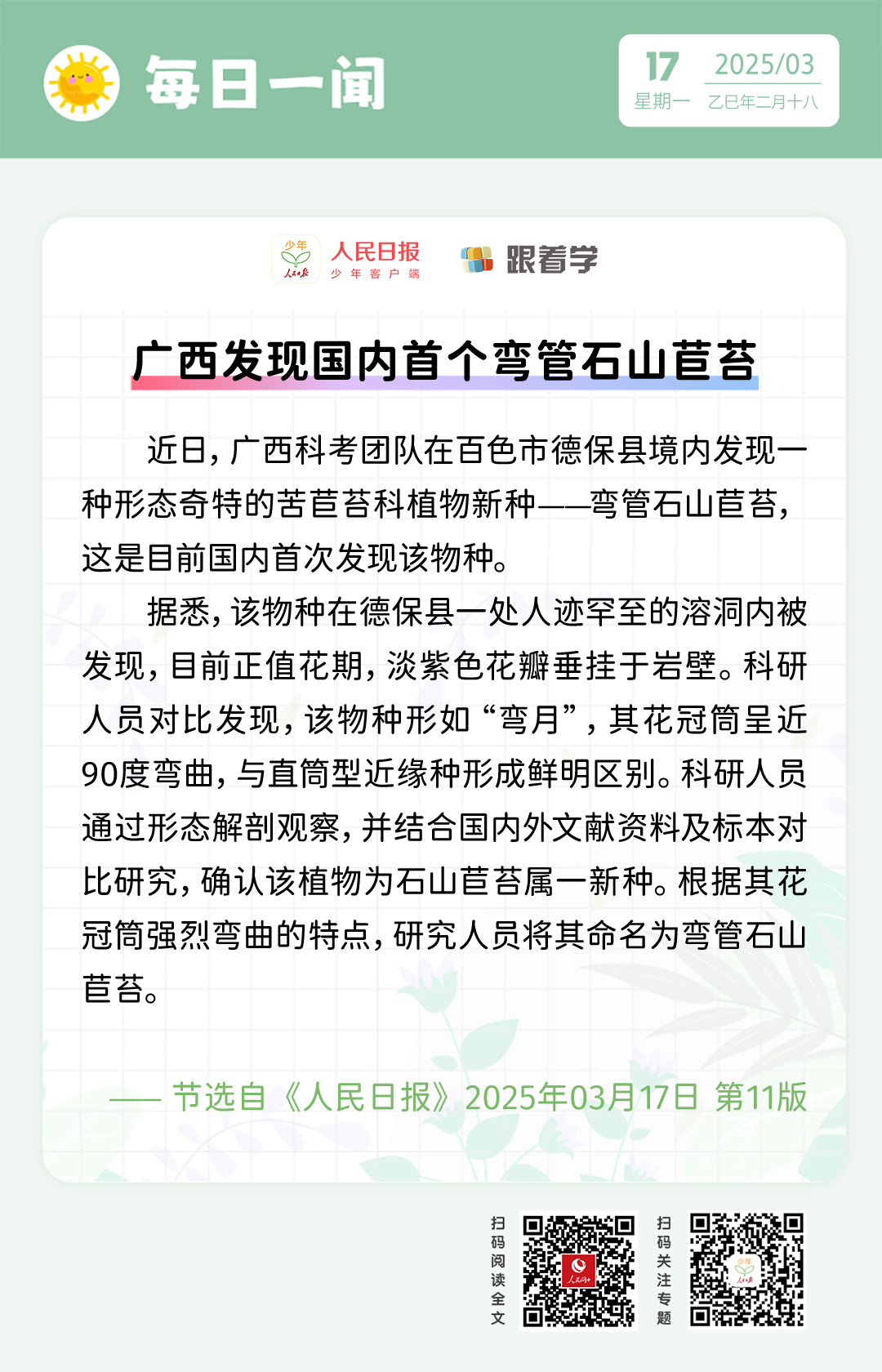 每日一闻丨广西发现国内首个弯管石山苣苔
