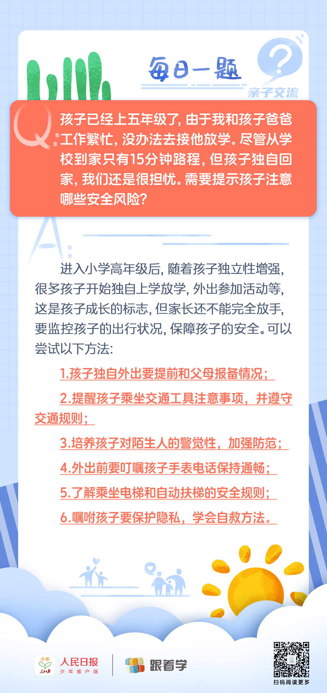 每日一题丨孩子独自外出需要提示哪些安全风险?