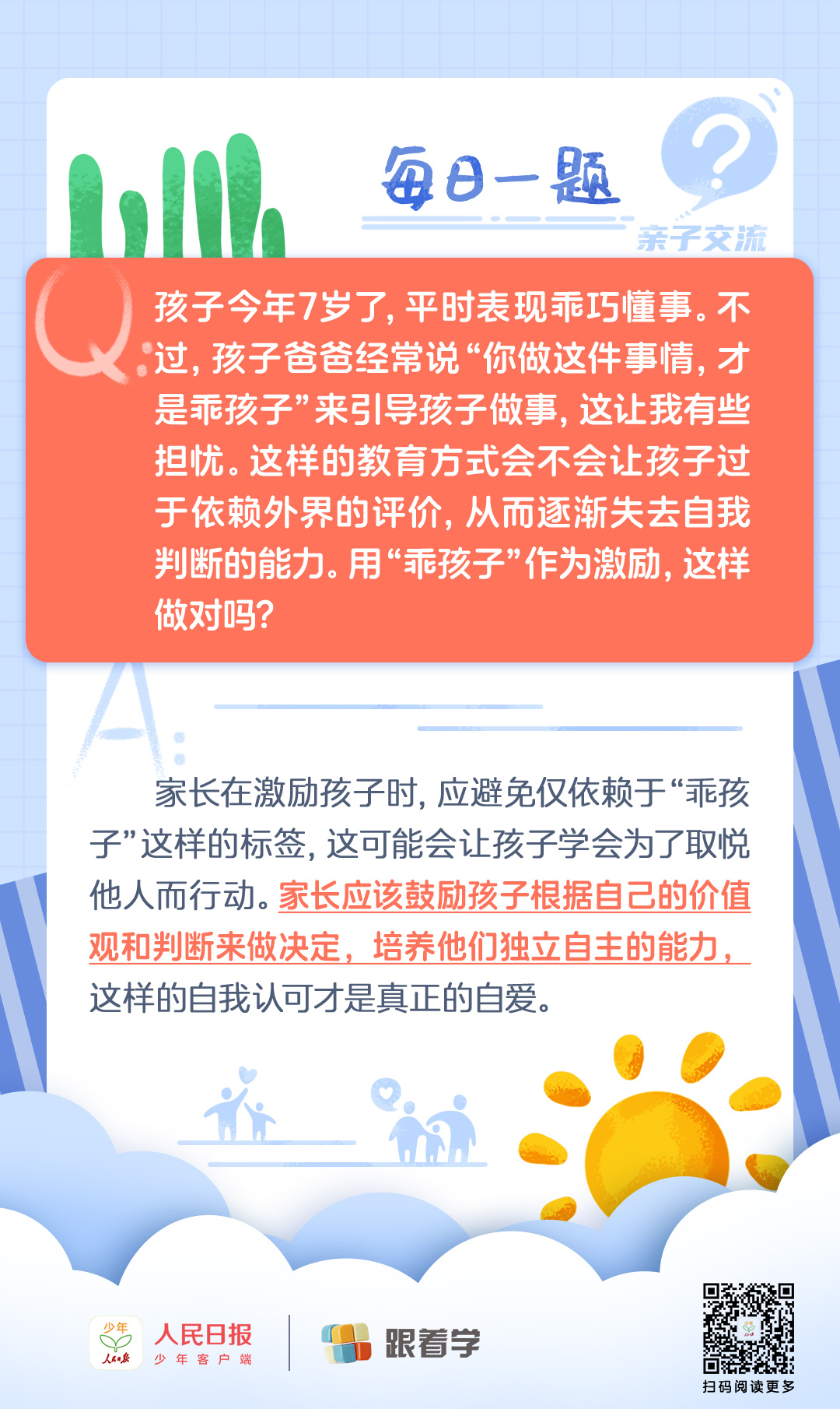 每日一题丨用“乖孩子”来激励孩子,这样做对吗?