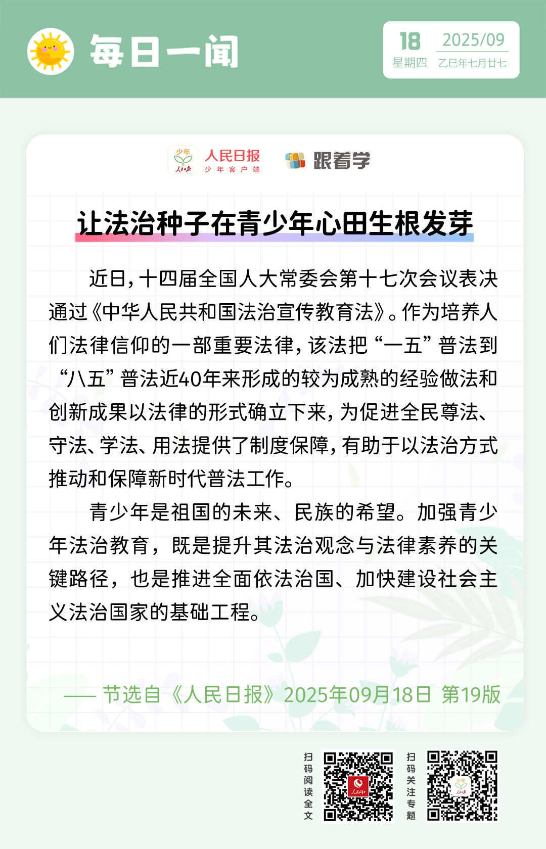 每日一闻丨让法治种子在青少年心田生根发芽